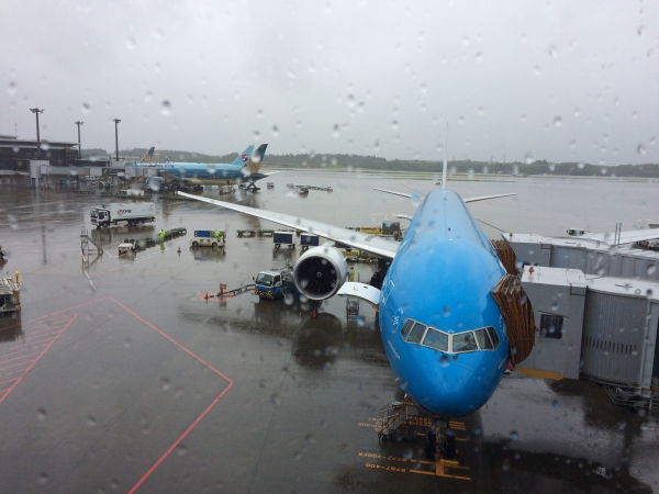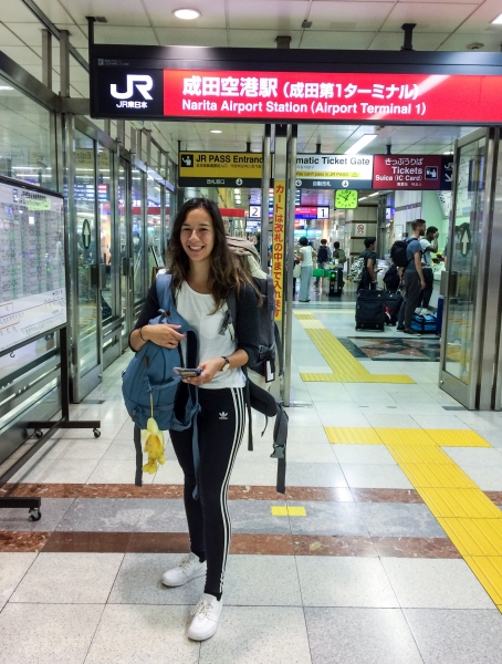 Onze piloot zet het vliegtuig soepeltjes aan de grond. Als we uit het vliegtuigraampje kijken, zien we dat de regen met bakken uit de hemel valt. Verbaast ons niks, want de weersvoorspellingen waren voor de komende week niet zo best. Het is niet anders. We maken er gewoon het beste van. In de aankomsthal valt de drukte heel erg mee. We activeren gelijk onze JRP passen en pakken de sneltrein naar het centrum van Tokyo.
