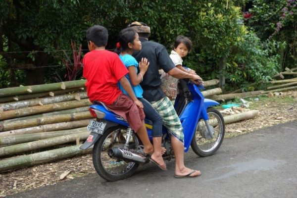 De Indonesiër die het kan betalen koopt vanzelfsprekend een auto …. of meerdere bolides als hij heel erg rijk is. De Japanse autoindustrie (lees Toyota) vaart er wel bij. De motorfiets of brommer is met stip vervoermiddel nummer een. Je kunt met een heel gezin (man, vrouw en 2 kleine kinderen) makkelijk op een brommer. Veiligheid lijkt in dit land wat dat betreft ogenschijnlijk bijzaak. We hebben vaak met open mond en toch ook met bezorgdheid gekeken hoe het hier allemaal aan toe gaat. Ze doen het gewoon … En blijkbaar gaat het bijna altijd goed!