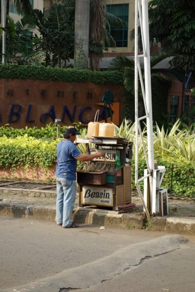 Benzine is in Indonesië relatief goedkoop… Relatief is een betrekkelijk begrip, want per 1 juni heeft de president een algemene prijsverhoging van benzine doorgevoerd vanwege de hoge olieprijs. Een liter brandstof kost momenteel ongeveer 6500 rupiah, ca. 50 eurocent (was 4500 rupiah, dus dat is rigoureus). De gemiddelde burger voelt dat keihard in zijn portemonnee en klaagt steen en been. Ik betwijfel of er minder wordt gereden. De oliestaten en Pertamina, de Indonesische staatsoliemaatschappij, zullen hier wellicht het meeste van profiteren en niet de plaatselijke benzinevekoper op iedere hoek van de straat.