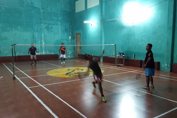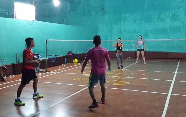 “Smash!!!” En zo winnen Yara en de Franse Lea de badmintonwedstrijd tegen 2 Molukse mannen.
