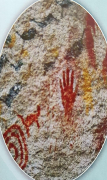 De reden om hierheen te rijden is dat er grottekeningen te vinden zijn. En daar gaat het fout. Aangekomen is het eb en kun je honderden meters het strand aflopen naar de zee. Hierdoor is het mogelijk om de prehistorische kunstwerkjes te bewonderen. Het is echter moeilijk lopen op het zand. Het is meer een wad, met zuigend zand, waardoor onze voeten zich vastzuigen en het ploeteren is om langs de rotswand onze weg te vinden.