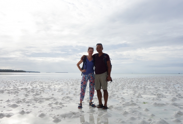 Na enkele honderden meters wordt de grond nog zompiger en ligt vol met vreemde weekdieren. Yara en Noa besluiten terug te gaan, maar Giorgio, Jerrel en ik zoeken nog verder. En.. We vinden een grot. Maar geen tekeningen? We geven het op en lopen terug naar Savanna Cottages (hier zijn we de zoektocht). We krijgen van de Gerson, de beheerder van Savanna te horen wat er fout is gegaan. De tekeningen staan niet in een grot, maar hoog bovenop de klif, die overigens nog verder is dan tot waar wij zijn gelopen. Helaas, wel een avontuur op dit spierwitte wad, maar geen “grottekeningen”