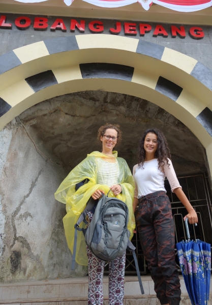 Deze is niet ontstaan door erosie maar door een enorme aardbeving, waardoor de aarde letterlijk uit elkaar is gescheurd. Het is nauwelijks voorstelbaar welke krachten er voor nodig zijn geweest om de aarde zo diep en wijd te laten wijken. Bovenop de klif zit een kolonie apen en het alfamannetje is duidelijk zijn territorium aan het verdedigen als we langs de klifrand lopen. Dus schieten we gauw de ingang van de Japanse tunnel in, die iets lager in de klif is uitgehakt. We laten ons rondleiden in de indrukwekkende ondergrondse gangencomplex die in de tweede wereldoorlog door de bezetters is aangelegd als een ondergrondse kazerne. Noa vindt het maar niks en als we de keuken annex executiekamer en de cel te zien krijgen, is het klaar. Ze wil eruit en griezelt eenmaal in het zonlicht nog flink na.