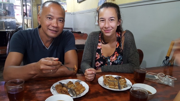 Voordat we naar het hotel terugkeren, lopen we nog langs Martabak KaKa voor de allerbeste hartige martabak in Bukittinggi. Ze hebben er een variant met kip en eend. We bestellen beide, maar de eend wint met snavellengte en het bord gaat schoon terug naar de keuken.