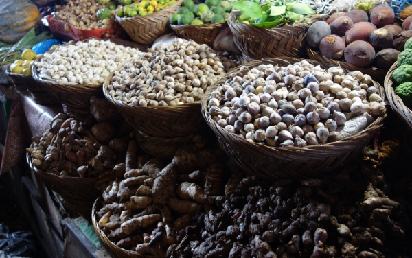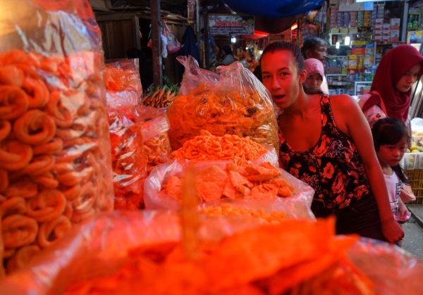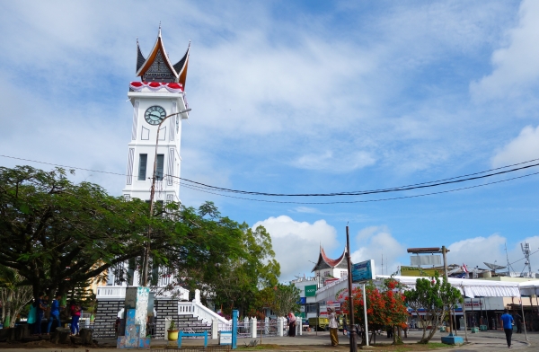 We hebben twee volle dagen in Bukittinggi en starten met de centraal gelegen klokkentoren, op vijf minuten lopen van ons hotel. De stad vindt of wil dat deze toren het icoon van Indonesië wordt, maar wij zijn het unaniem met elkaar eens dat de toren aardig is, maar te gewoontjes en saai voor het predicaat boegbeeld. De markt die naast het plein ligt is enorm en beslaat een groot deel van het centrum. We struinen over de markt en tussen de wirwar van kraampjes en trappen en kopen fruit, enkele kledingstukken en natuurlijk een durian voor Jerrel. Het is een klein ding, maar er komt geen einde aan de inhoud…. dus Jerrel geniet.