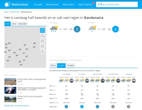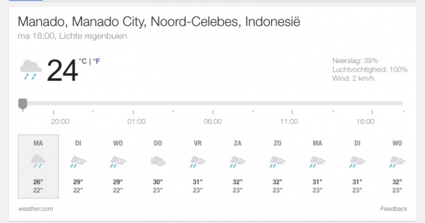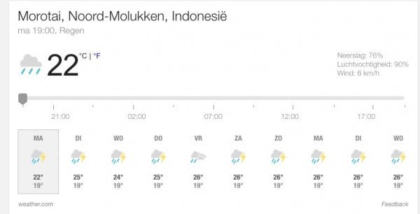 Na een dag met storm en regen op zee en binnen zitten, zijn we blij als er in de avond weer stroom is en daarmee ook wifi. Wij Nederlanders willen op reis weten wat voor weer er wordt verwacht. En dat is ronduit slecht. En slecht weer is slecht voor het humeur en de reiszin. Online blijkt dat heel het noordelijk halfrond van Indonesie door dikke bewolking en slecht weer wordt geplaagd. En dat de komende 2 weken! Ten oosten van Bali en onder de evenaar lijkt het beter.