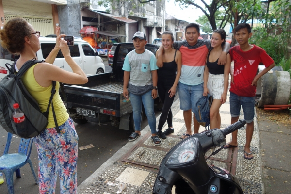 Al varende begrijpen we waarom de ferry’s niet gaan vandaag. De golven zijn behoorlijk wild door de harde westenwind en ons bootje wordt flink heen en weer geslingerd zodra we uit de luwte van Bunaken varen. vlak voor de haven van Manado zijn de golven behoorlijk hoog en beleven we enkele hachelijke momenten. We hebben echter een zeer ervaren schipper die ons veilig aan wal brengt. Vlakbij de haven is Hotel Celebes, waar we onze backpacks stallen om vervolgens het stadsdeel rond de haven van Manado te verkennen.