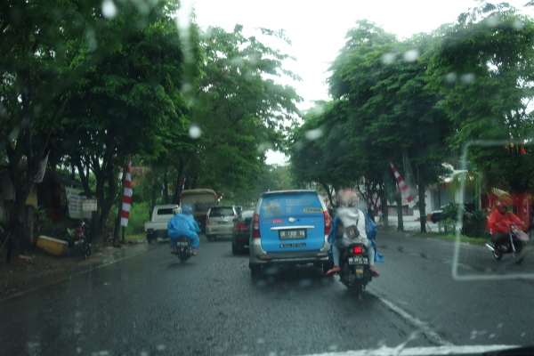 Aan ons programma hebben we als eerstvolgende bestemming toegevoegd Raja Ampat, een eilandengroep tussen Irian Jaya en Noord-Molukken. Allemaal plekken waar we met name aan, in of op de zee zullen reizen. Eiland hoppen onder zulke slechte weersomstandigheden is onverantwoord en bovendien geen lol aan. Je bent aan het schuilen tot het opklaart. De boten varen niet en de vliegtuigen vliegen niet. Het openbaar vervoer ligt stil. Het komen en vertrekken is het grootste probleem. Er daar komt onze reizigersgeest om de hoek. We laten ons reisschema volledig los en gaan op zoek naar een drogere, zonnigere bestemming. Net als wij zijn er nog een aantal andere reizigers die hun reisplannen omgooien. Weg van de regen.