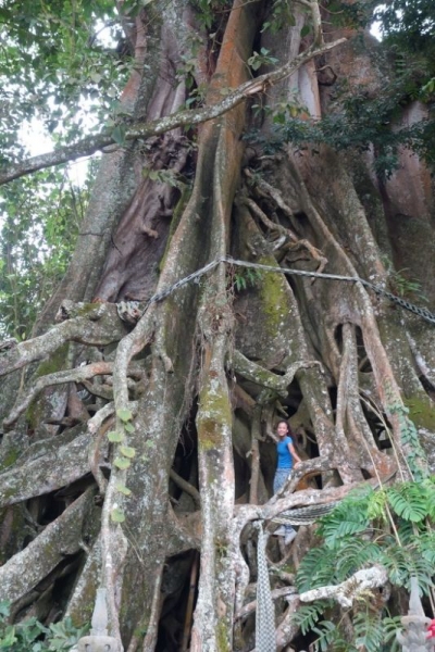 De boom is 800 jaar oud en is meer dan gigantisch (de ficus blijkt hier een heilige boom te zijn, de boom des levens). Je kunt er niet alleen omheen lopen, nee ook erin, erdoor, omhoog klimmen en ergens halverwege de stam weer naar buiten komen. Het is een levensecht klimparadijs en Noa droomt al van een pretpark met een zelfde soort boom, met een hut en… De boom is de wandeling meer dan waard.