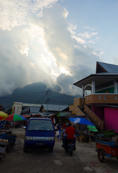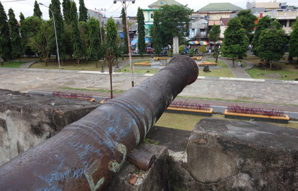 Hier treffen we Bernd, een Duitse pensionado met een diepe liefde voor Indonesië en met name de familie van Hasron. Hij komt er al jaren en blijkt een schat aan informatie te hebben over het eiland, de bezienswaardigheden en de historie van het huis en haar bewoners. Binnen een half uur begint zich onze verkenning van de eilanden Ternate en Tidore zich af te tekenen. Deze eerste dag willen we echter nog erop uit in Ternate stad. We besluiten eerst Fort Oranje te bezichtigen en daarna de markt en tot slot iets te eten. We krijgen een lift van de eigenaar naar het centrum, omdat hij daar zijn dochters gaat ophalen van school.