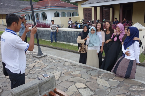 Ons bezoek doet wel stof opwaaien, want binnen enkele tellen worden we begroet en natuurlijk gevraagd om samen op de foto te gaan. Ook de jongens houden ons tijdens het dansen goed in de gaten. Als we na een tijdje naar de markt lopen groet bijna iedereen ons en worden er overal openlijk of stiekum foto’s van ons gemaakt. Facebook raakt vol met onze gezichten. Maar de eilanders zijn vriendelijk en hebben stuk for stuk een grote lach, dus ook na tig keer poseren, blijven we ook daarna nog staan om de mensen een plezier te doen. We voelen ons een beetje Beyoncé en Maxima tegelijk.