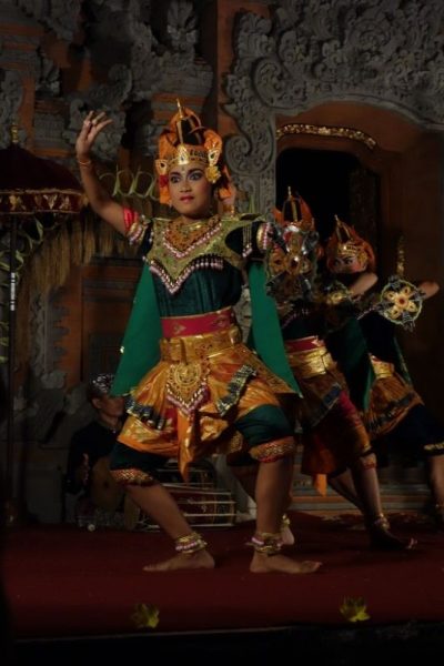 Het is een prachtige tocht. We bezoeken rijstvelden, we mogen bij iemand thuis rondkijken (een bamboe matten vlechter), een houtsnijwerkplaats en een uitgebreide lunch bij de baas thuis. Tot slot worden we bij onze homestay teruggebracht. Even rust voordat we naar het paleis gaan voor een Balinese dansvoorstelling met dertig koppig Gamalan orkest.