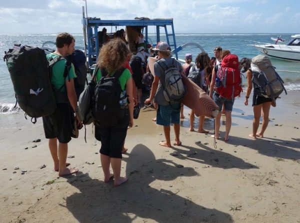 Ubud en Bali bevallen goed, maar Sulawesi wacht. Nu we ons steeds beter realiseren wat de afstanden hier betekenen moeten we keuzes maken. De Gili’s vallen het eerste af. Van zoveel mensen horen we dat ze daarheen trekken, dat we dit blijkbaar overlopen eiland zullen overslaan net als Lombok. In plaats daarvan kiezen we voor Nusa Penida en Lembongan. Slechts een dag, want daarna nemen we een vlucht van Denpasar naar Makassar. We vertrekken vroeg uit Ubud (en jawel! Onze chauffeur staat daadwerkelijk klaar) en gaan met de vissersboot over van Sanur naar Lembongan. En daar is een klein paradijsje.