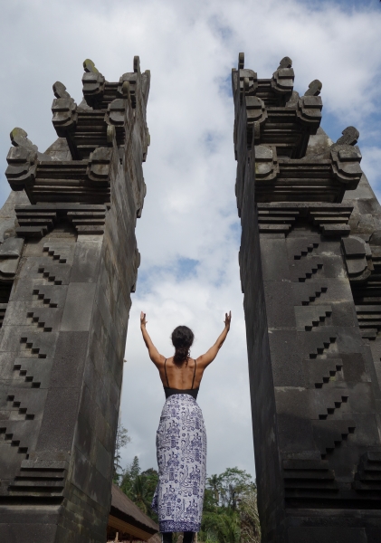 Na een stevige lunch van saté en nasi gaan we naar Gunung Kawi, een tempel uitgehouwen in de rotsen.