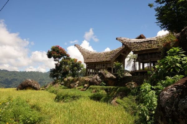 We lopen weer verder en hebben een prachtig uitzicht vanaf de berg met de sawa’s naar beneden. En na nog een heel stuk lopen houdt Yohanis een auto aan, die ons weer terug brengt naar Rantepao. We reserveren om ’s avonds traditioneel Toraja te eten. Het is echt heel speciaal, kip en varken in bamboe bereid met daarbij zwarte en rode rijst.