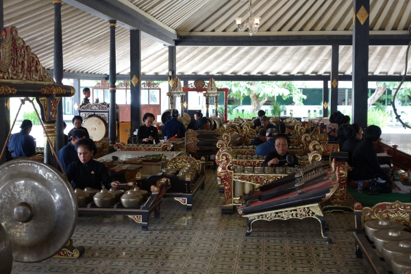 Gisteren begrepen we dat er rond 10.00 uur een Javaanse dansvoorstelling zou zijn in het Kraton. Vol verwachting togen we er per betjak heen….. maar in geen velden of wegen een dansvoorstelling te bekennen Alleen een gamelanuitvoering in het achterste deel van het complex. Het Kraton is zo ontzettend groot en dat hadden we gisteren compleet gemist. Misschien verstandig om ons de volgende keer iets beter in te lezen? ;).