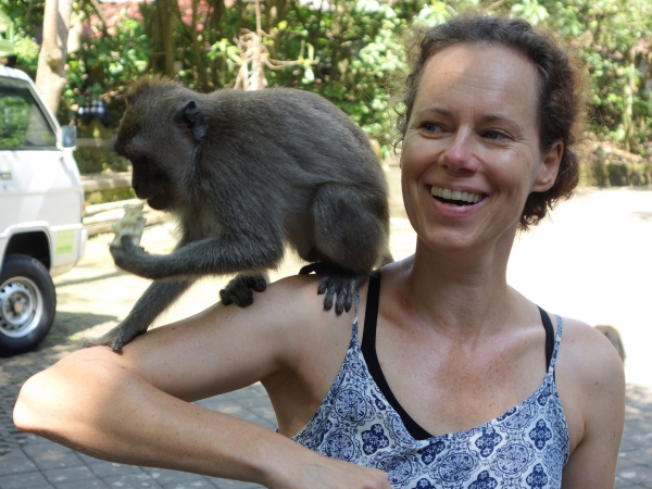Voor ons is het voor de tweede keer en het is wederom een leuk en spannend bezoek. Monkey Forest ligt op 15 minuten lopen van ons verblijf, Three Dewi’s Guesthouse dat pittoresk tussen de rijstvelden ligt. Een topkamer. Groot, schoon en.. een bad met warm water. Pure verwennerij!