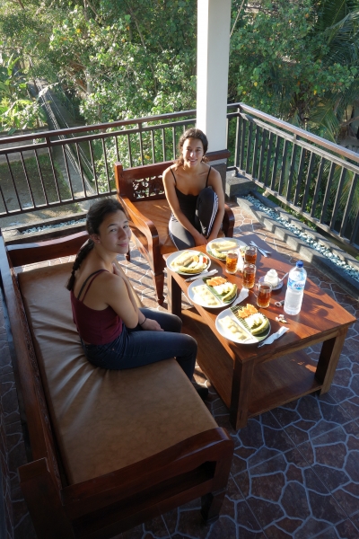 Elke en ik delen de mooiste kamer op de bovenste etage met een balkon voor en achter, waar we dagelijks ontbijten. Het uitzicht is geweldig!