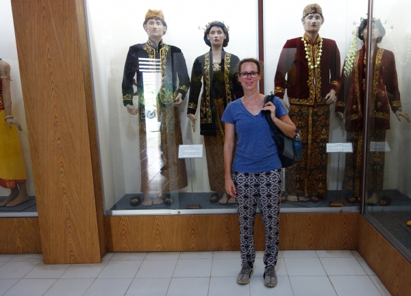 Als eerste gaan we naar Siwalima museum. Het is een avontuur er te komen, want het ligt aan de rand van de stad en we gaan met het openbaar vervoer (angkutan kota). Met Engels alleen kom je hier niet ver. Toch lukt het vrij vlot en staan we even later (opnieuw) tussen de bruidsjurken. Dit keer klederdracht uit alle windstreken van Indonesië. Het museum bestaat uit meerdere gebouwen, waarvan er drie open zijn. Allemaal met een ander thema. Het tweede gebouw bevat de geschiedenis van de Molukken, de werktuigen, huisraad, maar ook Portugese en Nederlandse overheersing. En de laatste hal het maritiem museum met een paar reusachtige potvis skeletten, boten en de verschillende visserijtechnieken.