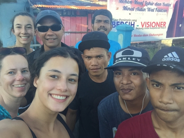 Met zijn allen strijken we neer aan de kust voor een jonge kokosnoot en bamisoep. We trakteren en onze musketiers eten gezellig mee. Weer opgeladen gaan we via de noordelijke route terug naar de haven. De jongens hebben inmiddels door dat we al en toe willen stoppen om een mooi plekje te bekijken en een foto te maken, dus brengen ze ons nog naar een paar mooie baaien en fotogenieke plekken. Het is een mooie rit en hoewel we genieten is het brommeren in de bergen en langs een slingerende kust ook vermoeiend.