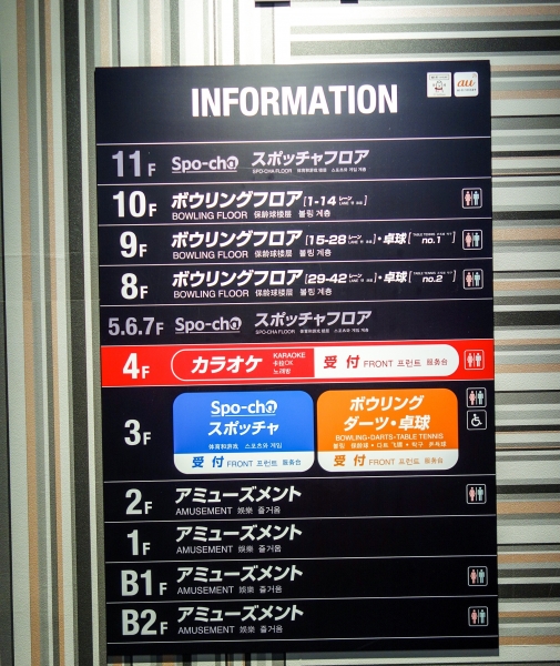 We gaan als eerste het Stadium One Arcade gebouw in. Zeven verdiepingen vol digitaal en non-digitaal entertainment. Van gokkasten tot kermisgrijpers. Van bowlingbanen tot pooltafels. Van simulatoren tot karaoke.