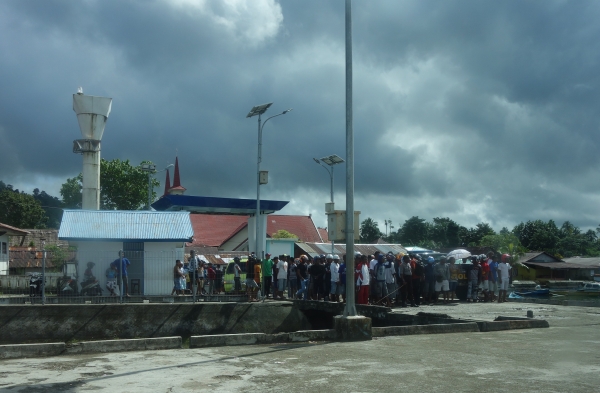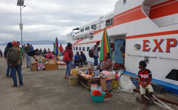 We staan om 7.00 uur klaar om met de taxi te worden vervoerd naar de haven van Tulehu. Het is ongeveer 50 minuten rijden en als we de haven oprijden, wordt de auto belaagd door een horde mannen.