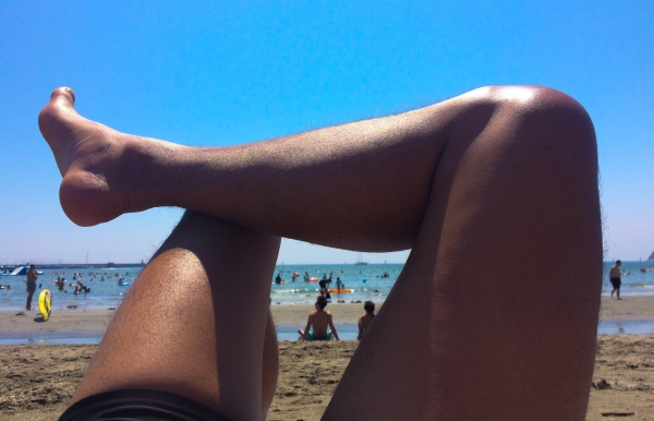 We smeren ons heel goed om niet te verbranden. Met de wind is het goed uit te houden. Yara gaat een paar keer het water in. Ik blijf aan de kant, werk aan de blogs, doe een dutje en vermaak me vooral met het observeren van alles wat er om me heen gebeurd. Er is op het strand geen geluisd overlast. Het is namelijk verboden om muziek op het strand af te spelen en alcohol te nuttigen. Er zijn wel strandtenten achter ons, maar ik heb niet gekeken daar wel alcohol wordt geschonken. Er is muziek, maar het volume is zo bescheiden dat je er op het strand niets van merkt. Heerlijk rustig!